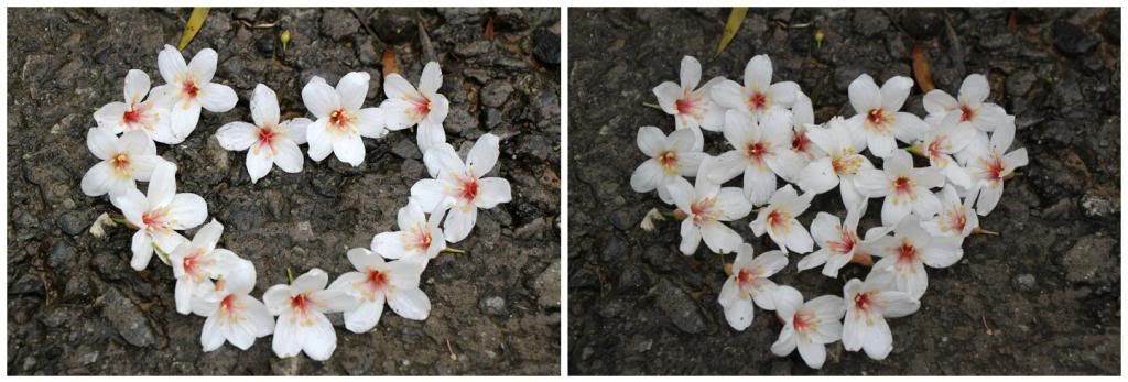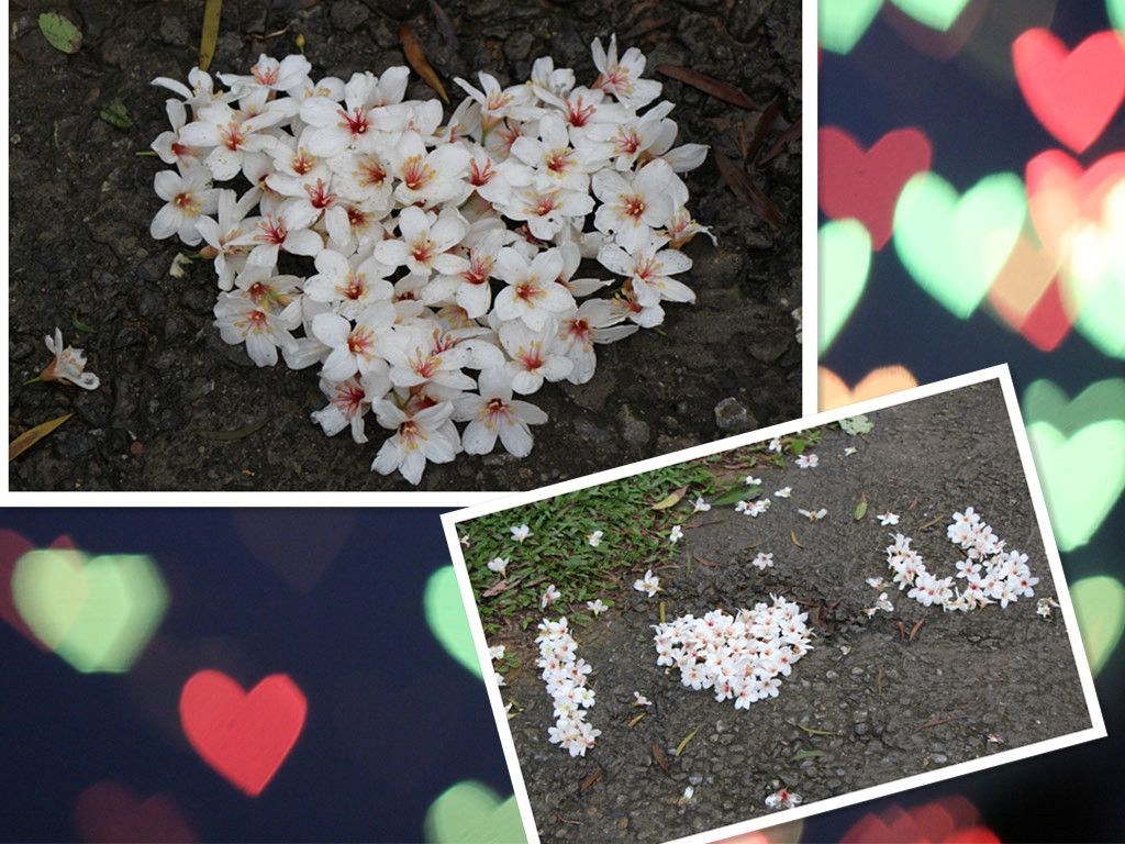 我在路邊隨地撿拾桐花, 排了一個空心的愛心