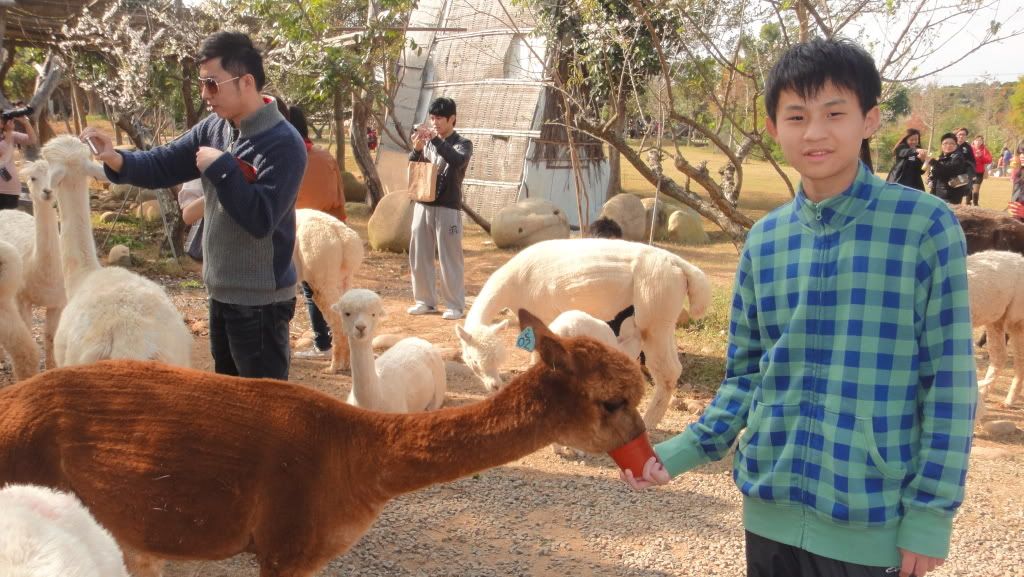 看! 兒子在捉弄羊駝啦! 故意轉來轉去誘拐牠吃~
